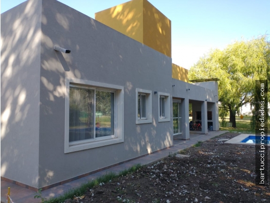 Casa construida en un Lote central arbolado añejo en exclusivo barrio privado en Jáuregui, Luján, sobre lote de 1000m² en la zona más forestada del barrio, desarrollada en una planta. A estrenar completamente sin uso.