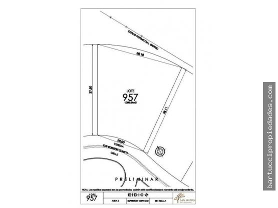 VENTA LOTE en Barrio San Matias, Escobar -Zona Norte- Más de 1000 m2 En el sector AREA 5, ingresando por la laguna principal Disposición: PERIMETRAL